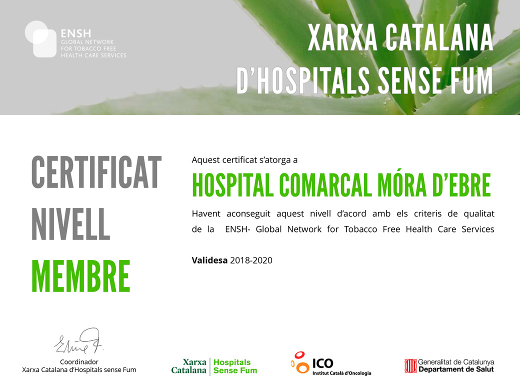 Formem part de la Xarxa Catalana d’Hospitals lliures de Fum com a membre des del 22 de novembre del 2012.