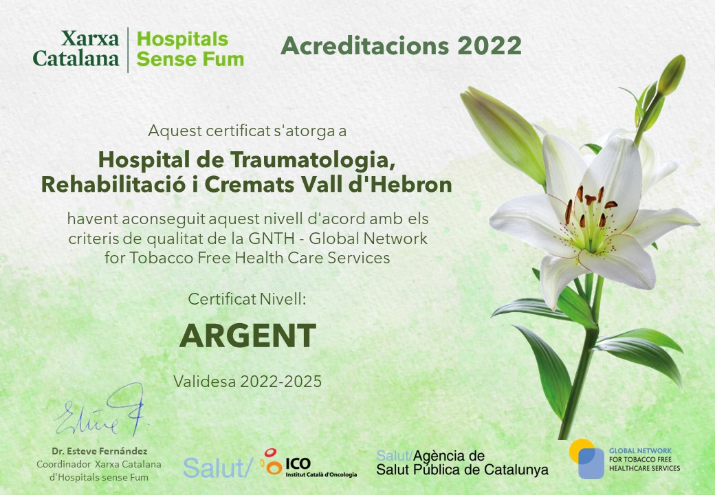Els indicadors de qualitat del projecte acreditats el 2011 mostren el màxim nivell al que es pot arribar al Qüestionari Selfaudit (151/168). L’hospital compta amb personal format en tabaquisme i una Unitat de Deshabituació Tabàquica ha ajudat a deixar de fumar a més de 220 treballadors i 400 pacients ingressats.