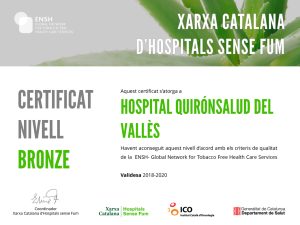 El projecte d’adhesió a la Xarxa Catalana d’hospitals sense fum forma part del nostre centre des del 2014.