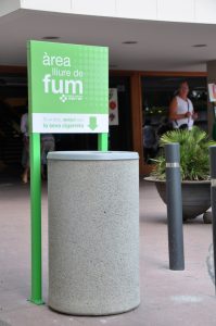 Seguint el que marca la llei 42/2010 de control del tabaquisme tot el recinte és lliure de fum i així està senyalitzat.