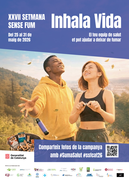 Com fem cada any, durant el 2026 des de la Xarxa Catalana d’Hospitals sense Fum ens hem implicat activament en la XXVII Setmana Sense Fum, del 25 al 31 de maig, sota el lema Inhala vida. Aquesta setmana representa una oportunitat per reforçar el nostre paper com a agents de salut i referents per a la població, promovent entorns lliures de fum i conductes saludables.